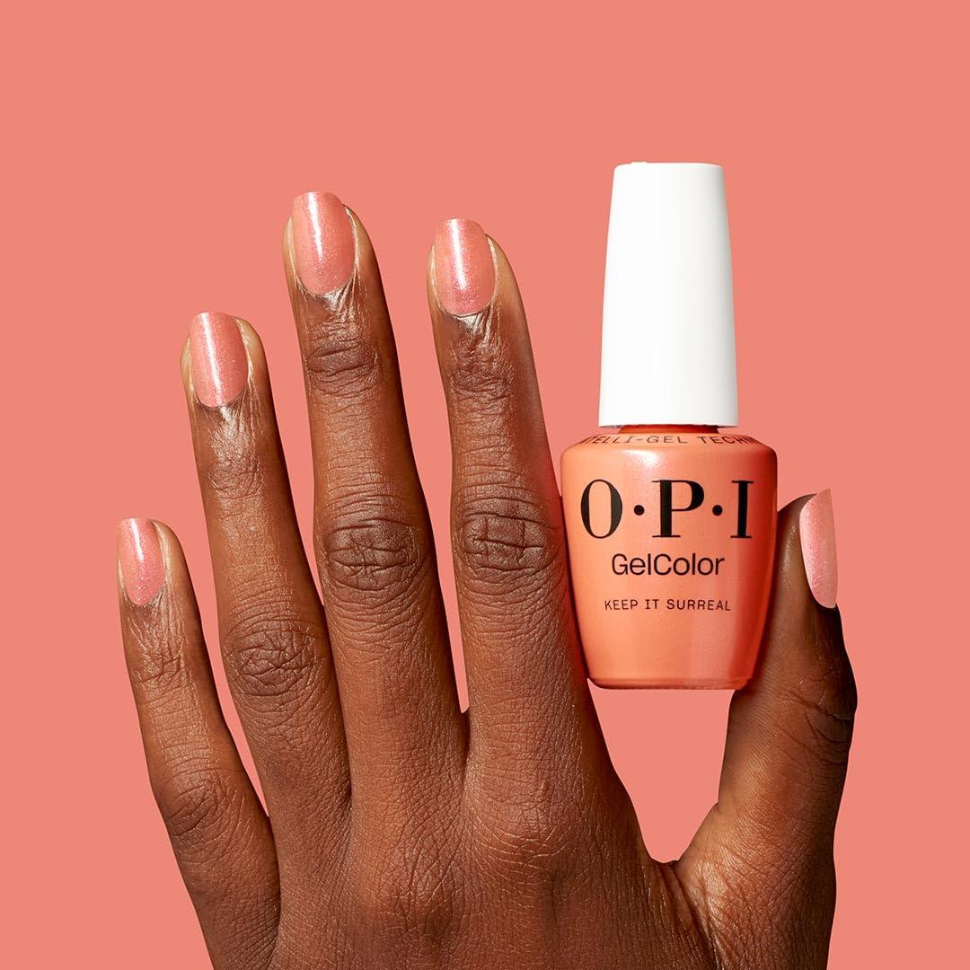 OPI GelColor LED Cure Gel Nail Polish | Yellow & Orange Shades | Salon-Quality Shine, Long-Lasting Wear | Easily Soak Off Removal | Vegan & HEMA Free | 0.5 Fl Oz(Keep It Surreal | Sheer Pastel Coral Shimmer)